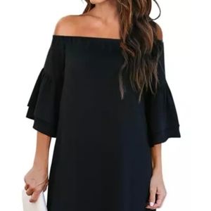Black Off Shoulder Ruffled Sleeve Dress