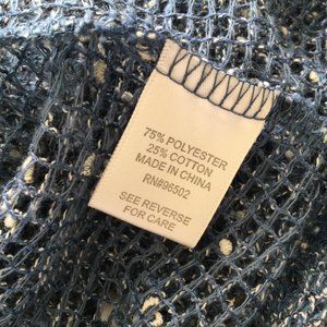 Krazy Kat Weave Blue Open Jacket, Size Large Loose Weave Jacket - great to throw on over a tee/cami Faux Leather Details in front Length 30" Bust 21" pit to pit all measurements are approx
