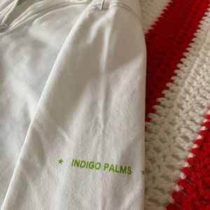 INDIGO PALMS white 1/4 Zip at neck - Green trim inside collar.