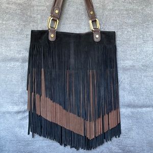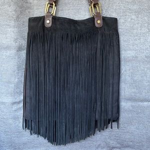 Ella Moss M/L Fringed Suede Leather Tote/handbag Black boho bag