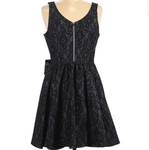 New with tag Express cocktail dress Sleeveless V neck Black Embroidered detail Ruched Pockets Flaired Front zipper Side zipper Top lined Please see pics for material Measures under arm 17" lying flat *weddings, cocktails, party dress, going out, little black dress 34" length #i21t