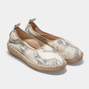 Cole Haan Grandpro Spectator 2.0 Lace Up Sneaker White Ivory Beige Snake print Leather Sneakers Low-Top Pull On Flats