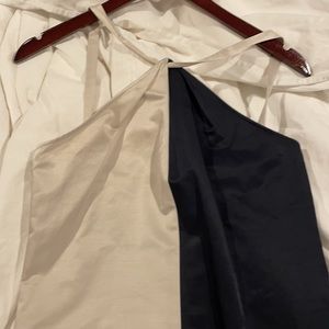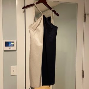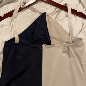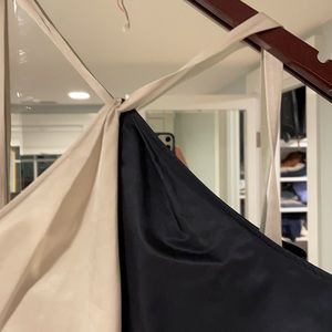 This is a beautiful vera Wang lavender label dress. I know we are in quarantine, but you will look stunning in this champagne/navy blue little dress. So chic! It says it’s a size 40 but it fits like a 38.