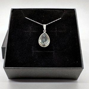 Large and lovely teardrop green (very light) amethyst pendant. Nice cut with very nice hang / drop when worn. Simple stone on quality sterling chain. Beautiful cut gemstone pendant.