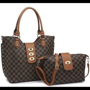 Checker Twist Tote Bag Brown TOTE ONLY