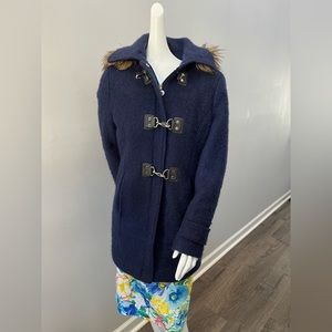 NEW Cole Haan Wool Faux Fur Trim Black Hooded Jacket Coat Size 6