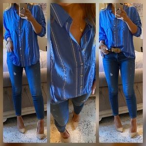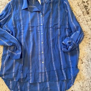I love this button down, itโs lightweight and almost feels like a linen. So beautiful. Modeling large