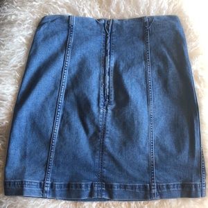 Size: 10. 16” long. 14.5” waist laying flat. Lots of stretch. Back zip. Favorite skirt just doesn’t fit anymore. Smoke free home.