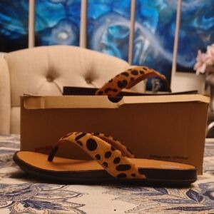 Synthetic and calf hair upper in exotic animal pattern