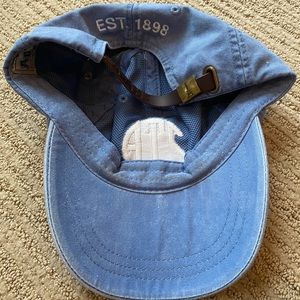 Adjustable strap hat with logo and founding year in back. Embroidered on