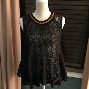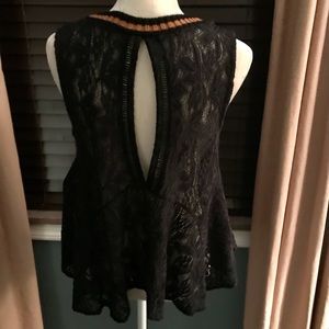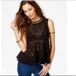 Free People Masie Black Lace Top. Size S, New without Tags. This peplum top has a keyhole back and ribbed collar. Its approximately 24” in length by 18” wide laying flat. Perfect for summer❤️