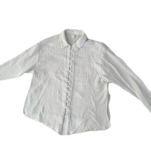 Features: Thin cotton duster bag with Rebecca Minkoff spellout and black ribbon closure in an ivory/gray color; approx. measurements 12.5” x 12”