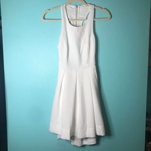 Lulus Exclusive! Hop on into the driver's seat and give the Test Drive White Dress a go! Princess seams and a rounded neckline perk up the front of a sleeveless bodice, while cutouts and strappy details bring the sex appeal in back. Textured woven fabric transitions from a few box pleats tucked into the waist, to a feminine full skirt. Exposed back zipper on bodice, hidden back zipper/hook clasp on skirt.