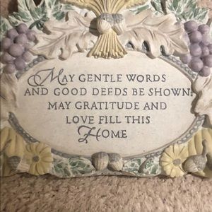 Beautiful home signage decor carved in a heavy stone with a great saying. Can be hung on a wall or display on a stand. With articulate carving of flowers, grapes etc.