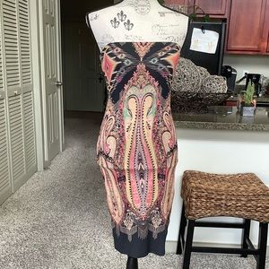 Medium washed denim. Wide leg. Cropped fit with frayed hem. Side slit pockets. Back zip. Adjustable straps tie in back. Can be worn with or without an undershirt. Little stretch. Not recommended for bust bigger than a B cup (Iโm a C and my boobs were slightly smooshed). Inseam 20 inches, leg circumference 31 inches at hem, waist 30 inches. 15 inches from armpit to armpit laying flat. 98% cotton, 2% elastane. New with tags.