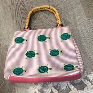 Vintage Striped Turtle Wooden Handle Mini Bag
