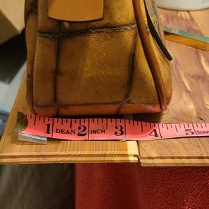 EUC AUTHENTIC Dooney purse with animal print leather. Lengh 12 inches width is 3 inches 18 inch shoulder strap. Light stain in the interior. Some discolo on bottom of purse but looks like the characteristics of the leather. Straps are in excellent condition. Please see pictures for full details. More pictures upon request