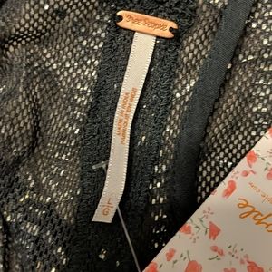 Brand new with tags Free People black mesh top with silver embellishments/sequins/beads in a geometric pattern all over. Spaghetti straps and sheer design. Oversized flowy design. Size medium.