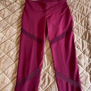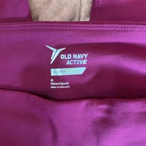 Old Navy Go-Dry active leggings. Size Medium. Never worn but inner tag has been cut out. Beautiful burgundy color, nice stretchy fabric, mesh details on legs. No flaws.