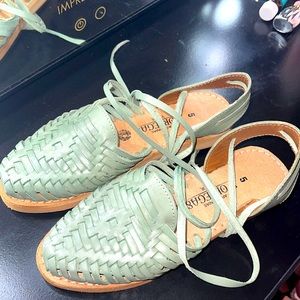 Sage colored huaraches with laces that wrap around