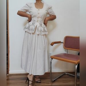 Double breasted Sleeveless Maxi Dress in olive Green shade Nice fitted comfortable. Linen + Cotton Tag size 5/6 . Great condition , slightly faded color around pit area (hardly notice) No minor damage.