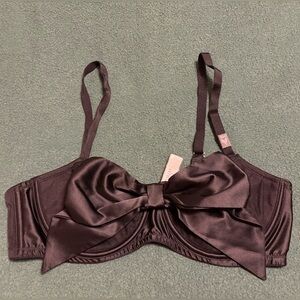 NWOT For Love and Lemons for Victoria’s Secret Floral Black See Through Bra. Charm with the brand symbol on the back. Adjustable straps with heart charm for adjusting. Flower pattern on bra straps. Cup pattern has hearts and flowers with polka dots on mesh cups. Purple color sown pattern. Underwire. Bought on VS.com. Never worn. Tried on but didn’t fit right. Size medium, bought to fit 34C. Brand new. See photos for condition.