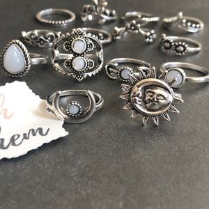 3/$25⚡️sun moon flower boho stackable ring set