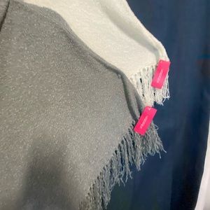 Beautiful hand-knit look cowlneck women’s ponchos bundle. Beautiful fringe, easy to pair with. NWT XS I would say would fit small as well and maybe some Mediums esp. Because they do stretch & conform to your body. Off-white pearl and grey. Both NWT. They are also listed separately, feel free to check out those listings for the full description. But feel free to message me with any questions as well! Bundle special :))
