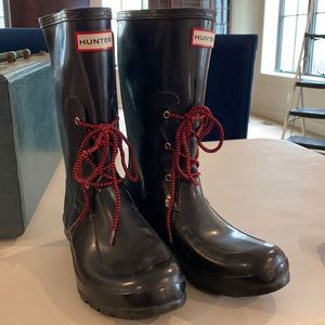 Hunter Black w/ Red Laces 11" H Rain Boots sz 7/8