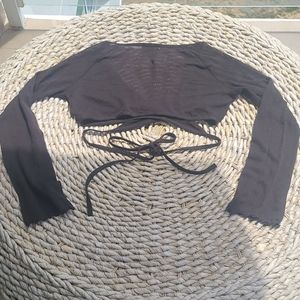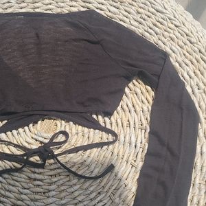 Bebe wrap around crop semi sheer flutter sleeve cardigan