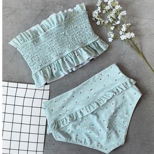 SOLD OUT CLEARANCE . Ditsy Floral Smocked Bandeau 2Pc Bikini Swimsuit