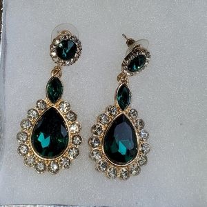Emerald green Prom gown with sequins, beautiful stones, side pockets, sheer material along the waist that gives the illusion of a 2 piece in the front. It also comes with a garment bag & matching earrings! It has a petticoat slip that's attached. Very good condition, worn once!