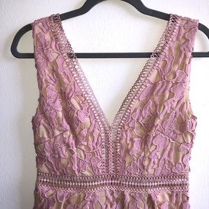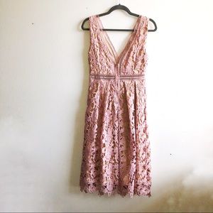 Romeo & Juliet Couture Double-V Lace Midi Dress Pink Sz M EUC.