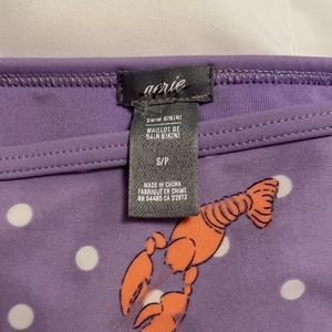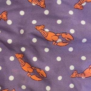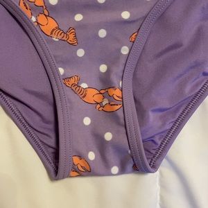 Bikini cut swim bottoms in a super fun polka dot and lobster print on lavender. Nylon blend is highly durable and resistant to tears and rips. Used in excellent condition; no signs of wear. Perfect for your next beach day!