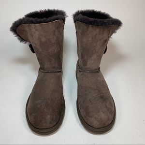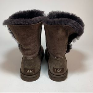 UGG Bailey Button Mocha Brown Winter Sheep Skin Suede Boots Womens Size 9 5803.
