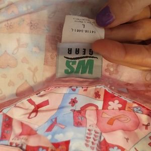 EUC WS Gear pink breast cancer ribbons scrub top