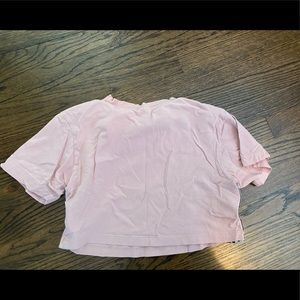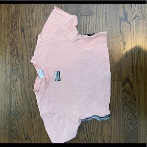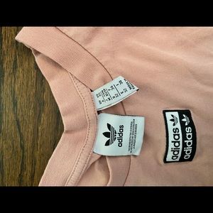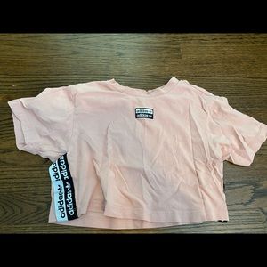 Pastel pink adidas crop top from urban outfitters in an xs. The adidsas strips are below the sleves to the bottom if the shirt.