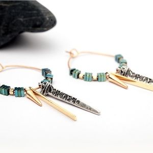New with tags Natural Green Ore Stone Drop Gold and Silver Earrings.