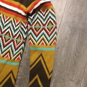 Leshop women’s Aztec print sweater cardigan with fringe at the bottom.