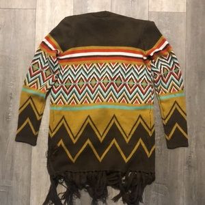 Women’s long fringe Aztec sweater cardigan
