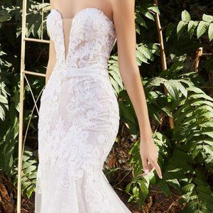 NEW WHITE WEDDING BRIDAL FORMLA Strapless MERMAID Bridal LONG MAXI Gown CD928