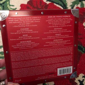 Lovely set of soy face cleanser, rose face mask, and Lotus Youth Preserve moisturizer. New in box. Received as a gift and I already have it!