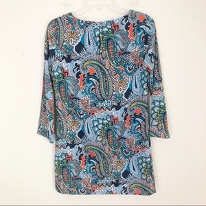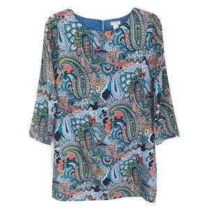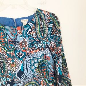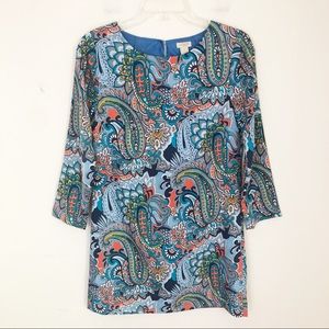 J Crew Factory Blue Paisley Shift Dress 3/4 Sleeve