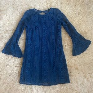The dress is in beautiful condition. It has gorgeous flowing sleeves. Wear it with a large black belt it would look amazing. There is no size please message with any questions.
