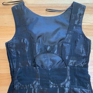 Black dress with geometric shape designs.