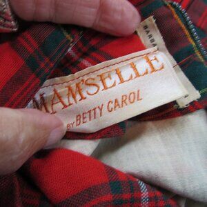 60'S VINTAGE MAM'SELLE BY BETTY CAROL RED TARTON HOLIDAY DRESS SIZE XS