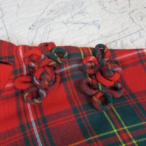 60'S VINTAGE MAM'SELLE BY BETTY CAROL RED TARTON HOLIDAY DRESS SIZE Slove love lovesize SThis vintage piece is in fabulous condition. It does have about an inch on each sleeve that has come apart in the seam. Easy fix for someone hand with a needle and thread. see final 2 picturesred tartan plaid with a high vented neck fabric rosettes at on shoulderelbow sleevesfitted through the bodice with a pleated skirtAdorable dressmeasured laying flat across the front