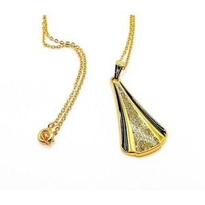 60S Van Doran Genuine Diamond Dust Vintage Pendant Necklace Gold Tone 9"