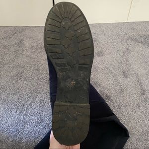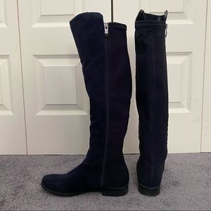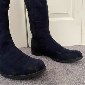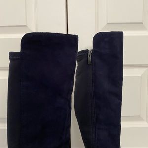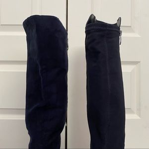 JCP Navy Blue high knee boots, zippered side. Narrow calf! Some scuffs on toe but still in good condition. Comes from a smoke-free home