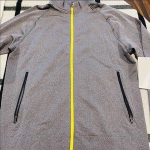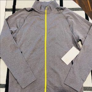 New with tags! Lululemon Men’s Pulse Jacket in Heathered Black (First Release). Awesome heathered gray black color with bright yellow zipper.